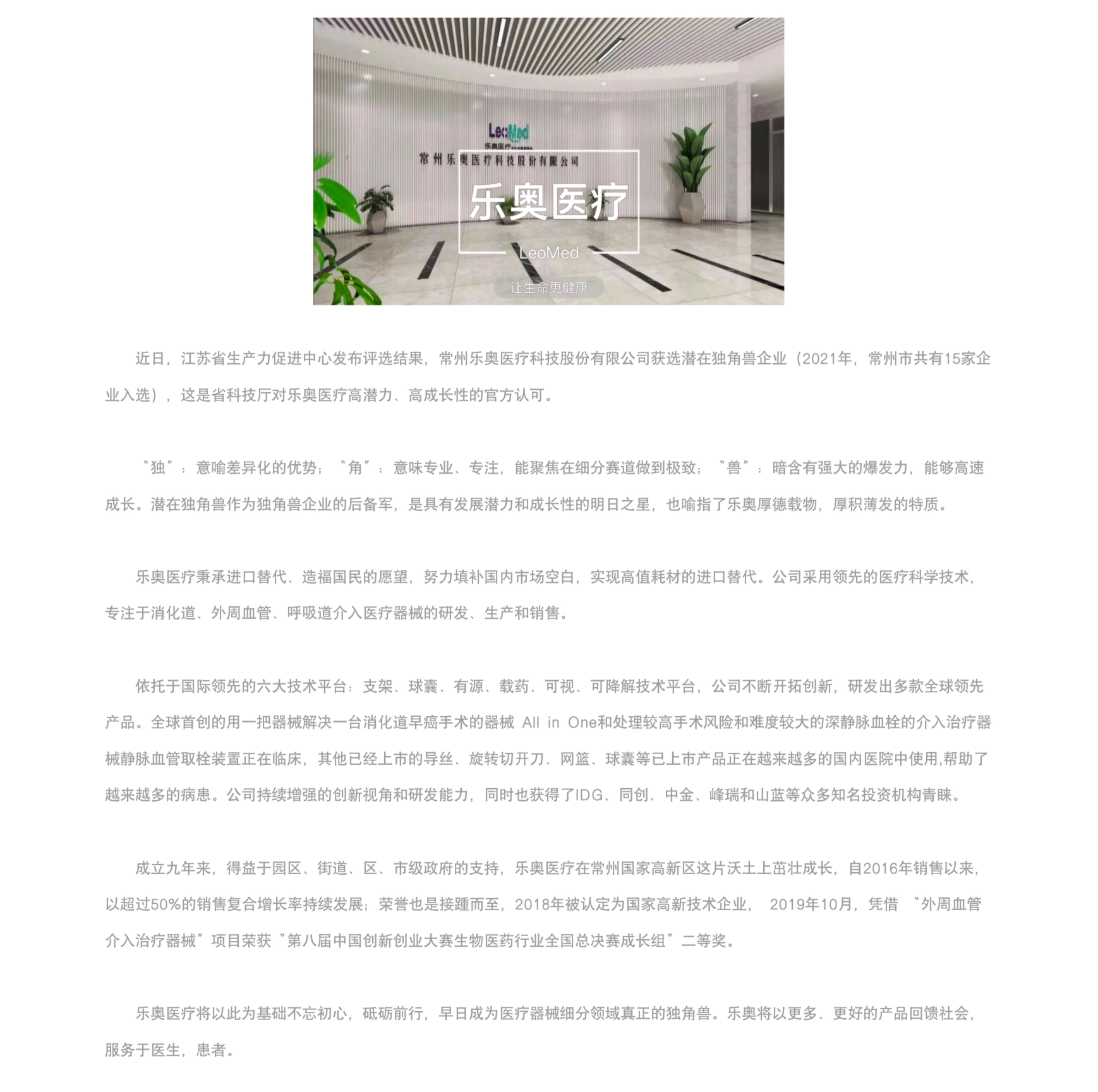「樂(lè)奧醫(yī)療」入選江蘇省2021年潛在獨(dú)角獸企業(yè)!