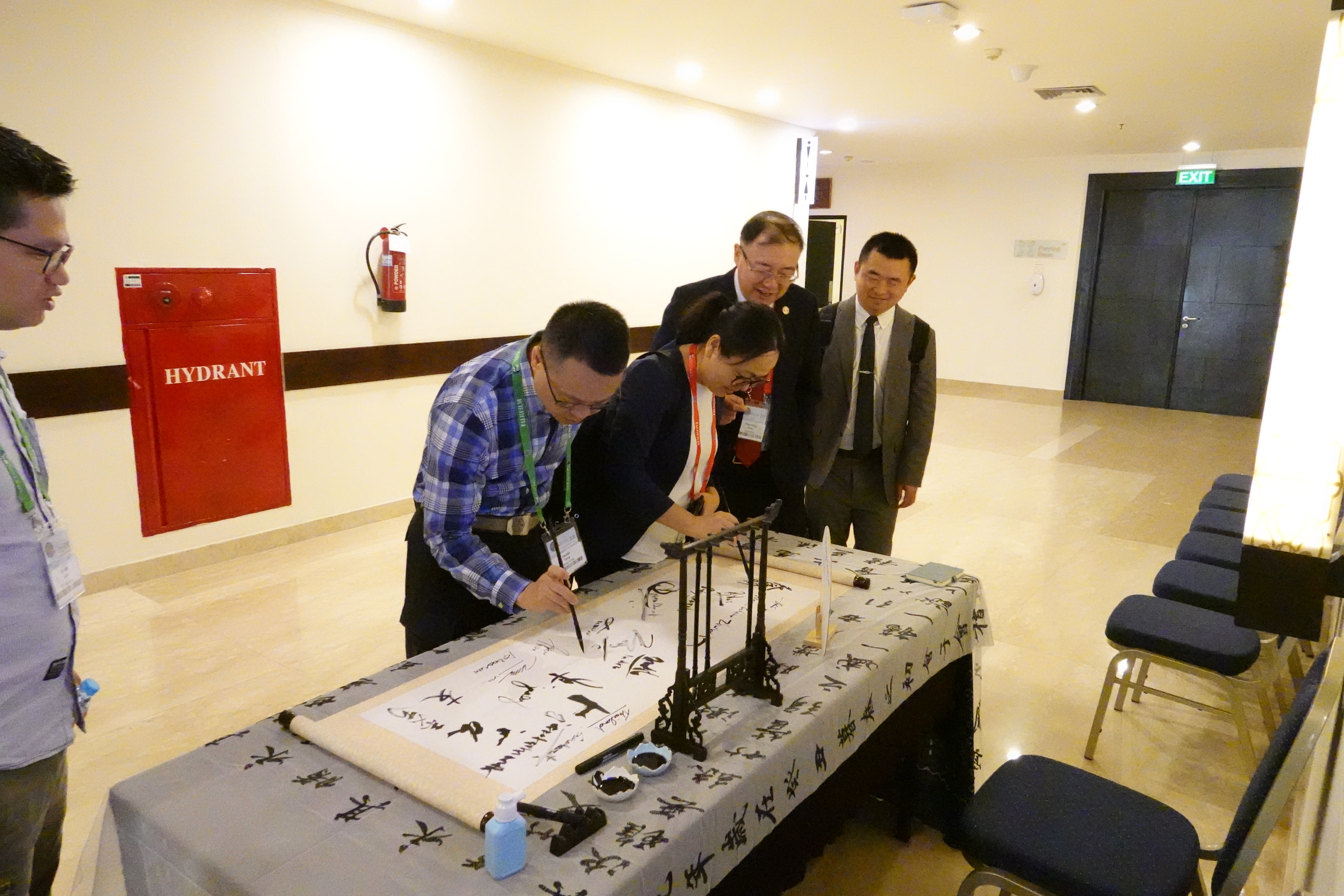 Before the meeting began, guests hadthe opportunity to experience a traditional Chinese brush sign-in session.International attendees were intrigued by Chinese culture and left theirsignatures on a scroll, reflecting their interest in this cultural tradition.