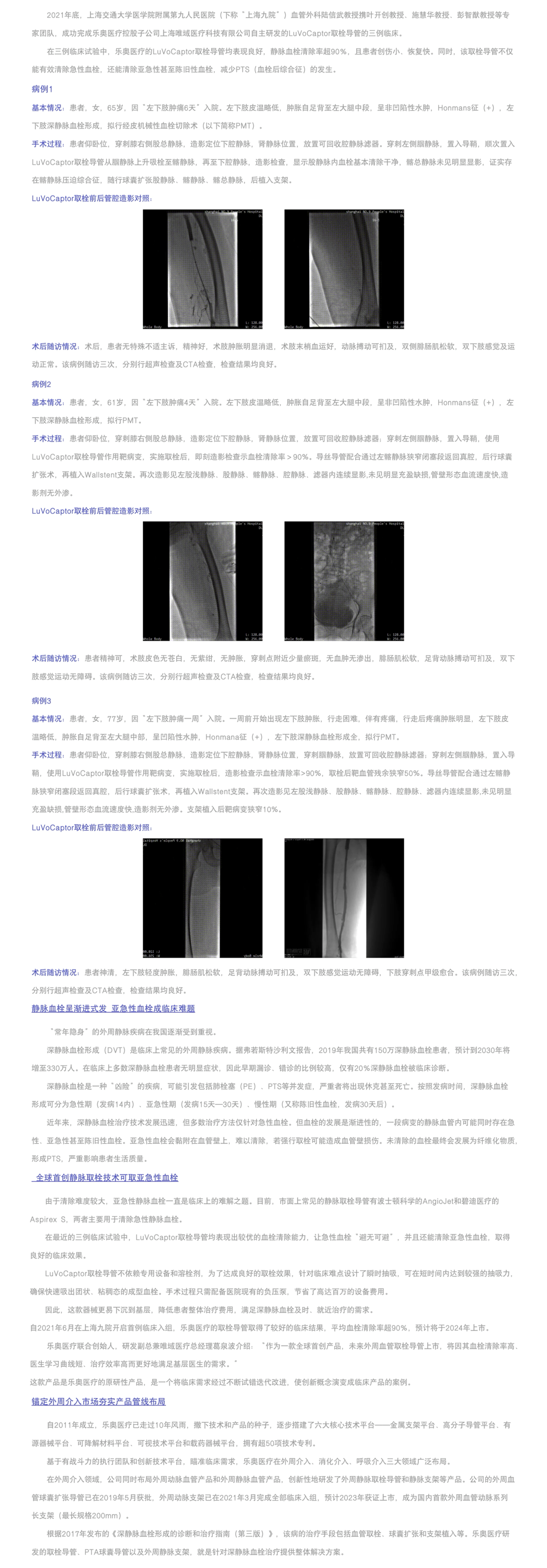 血栓清除率超90%,取出亞急性血栓,樂奧醫療靜脈取栓導管取得新突破!