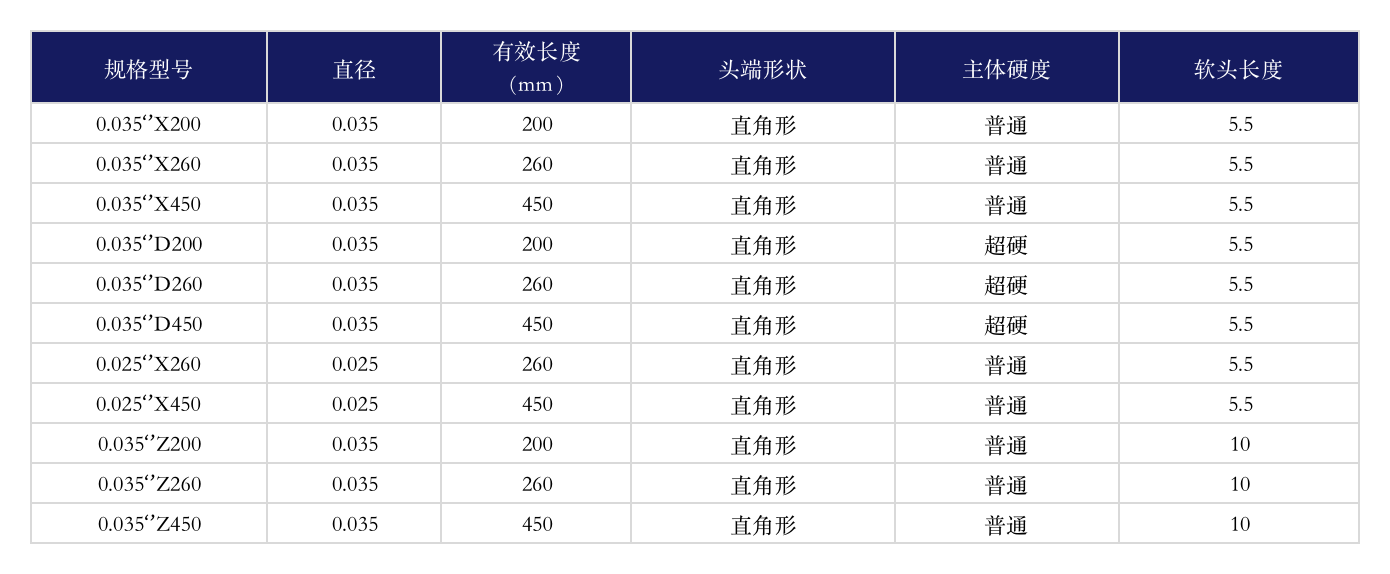 1、自潤(rùn)滑;2、鎳鈦合金內(nèi)芯;3、導(dǎo)絲表面采用雙色交替;4、可在X射線下顯影;5、喇叭口設(shè)計(jì)。